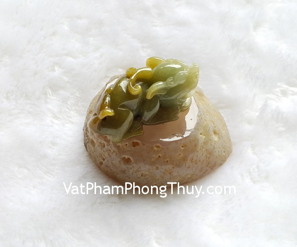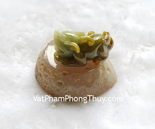 + Chất liệu và hoàn thiện: Tỳ hưu ngọc Phỉ Thúy vân xanh vàng (Myanmar, Miến Điện).