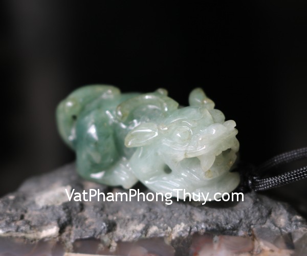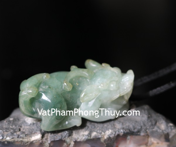+ Chất liệu và hoàn thiện: Tỳ hưu ngọc Phỉ Thúy vân trắng xanh lý (Myanmar, Miến Điện).