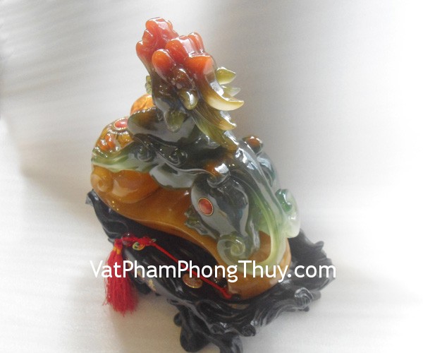 + Chất liệu và hoàn thiện: Tỳ hưu trên gậy như ý bột đá màu (tại Việt Nam).