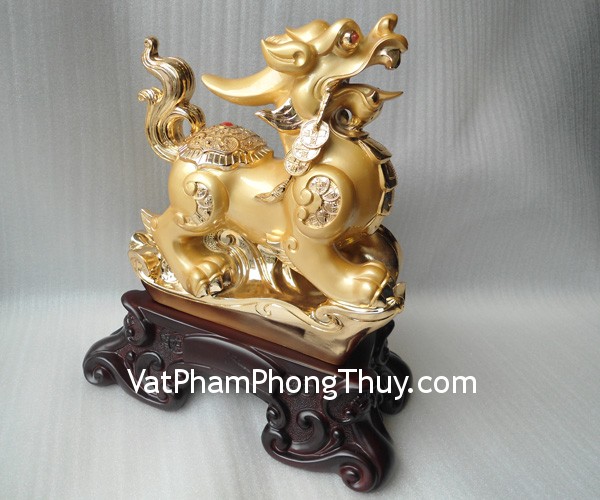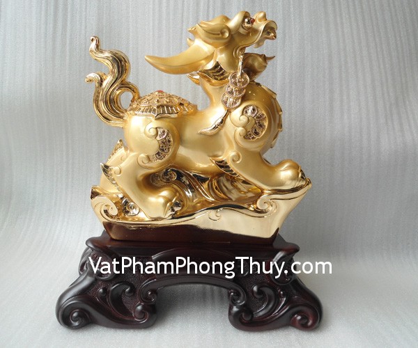 + Chất liệu và hoàn thiện: Tỳ hưu trên gậy như ý bằng bột đá mạ vàng (tại Việt Nam).