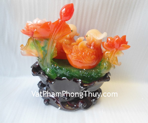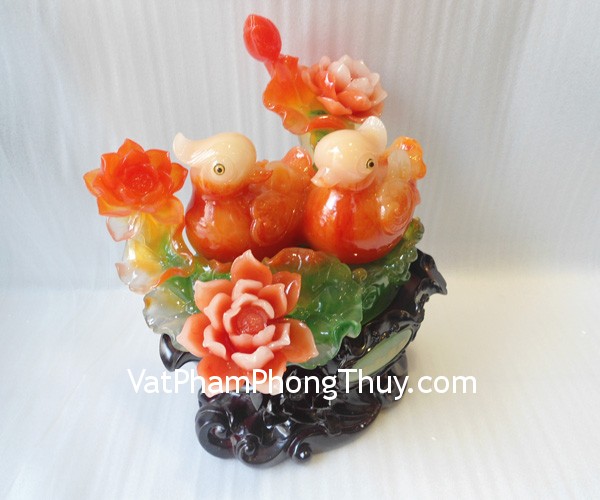 + Chất liệu và hoàn thiện: Tượng uyên ương đỏ trên tòa sen (tại Việt Nam).