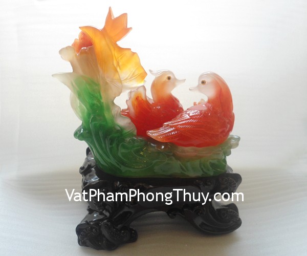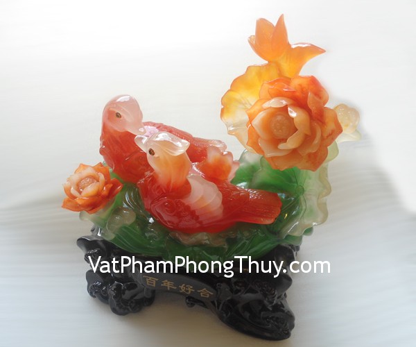 + Chất liệu và hoàn thiện: Tượng uyên ương trên lá và hoa mẫu đơn (tại Việt Nam).