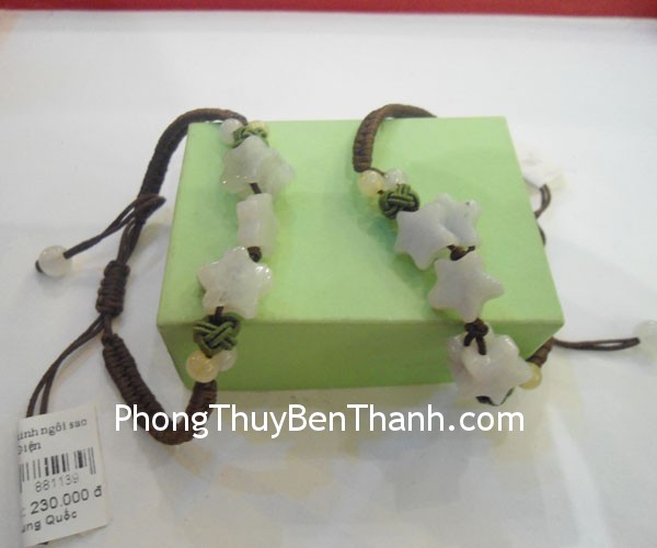 + Chất liệu và hoàn thiện: Vòng tay ngôi sao đá ngọc Miến Điện. + Kích thước (dài x rộng x cao): điều chỉnh theo kích cỡ tay. + Khối lượng: 6g + Ý nghĩa: ngôi sao may mắn. + Cách sử dụng: trang sức vòng đeo tay.