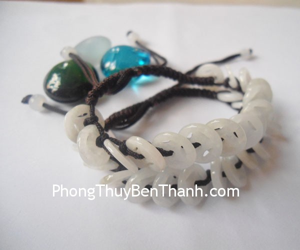 + Chất liệu và hoàn thiện: Vòng tay dây rút kết tiền xu đá ngọc Miến Điện.