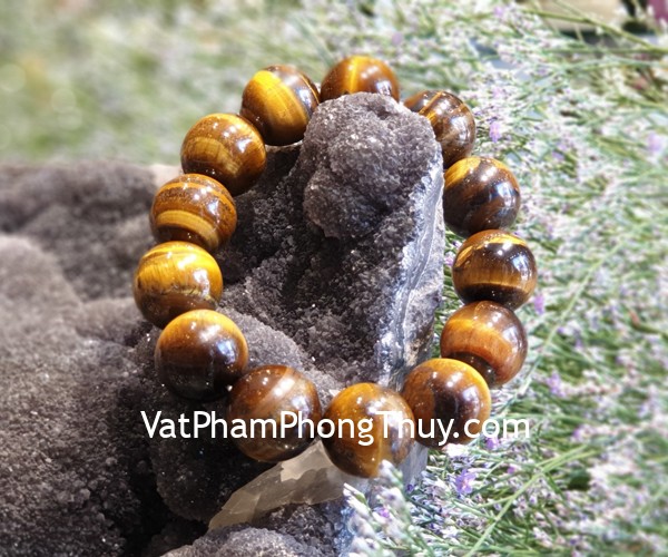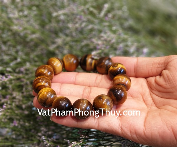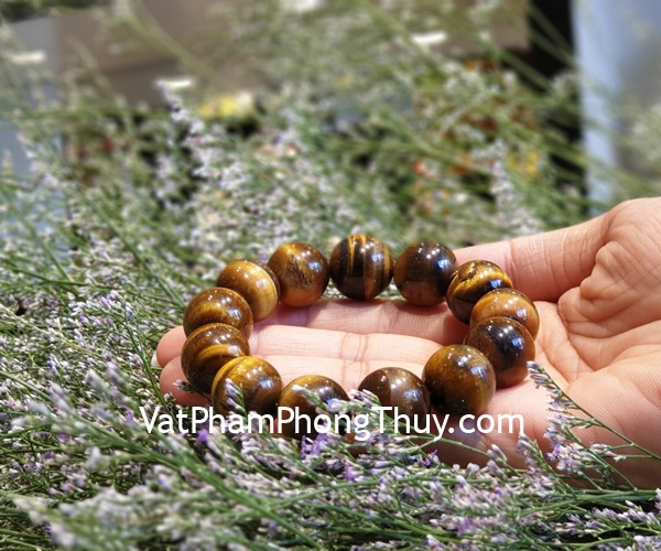 + Chất liệu và hoàn thiện: Chuỗi đá mắt mèo vân vàng nâu (tại Việt Nam).