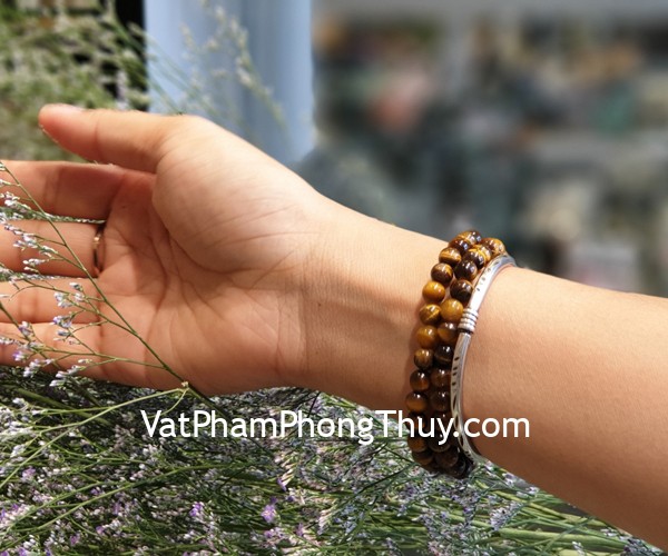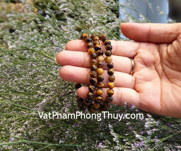 + Chất liệu và hoàn thiện: Chuỗi đá mắt mèo vân vàng nâu (tại Việt Nam).