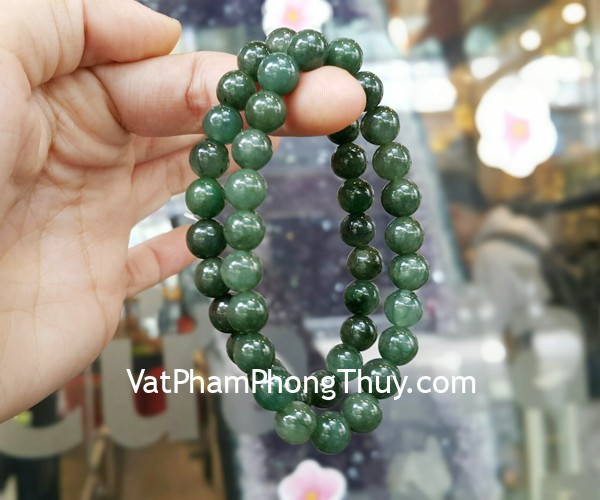 + Chất liệu và hoàn thiện: Chuỗi đeo tay ngọc Phỉ Thúy vân xanh đậm (tại Việt Nam).