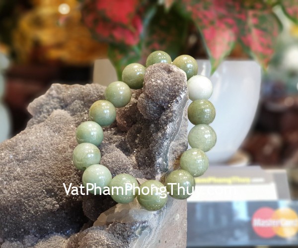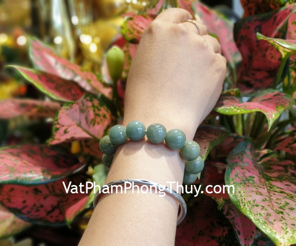 + Chất liệu và hoàn thiện: Vòng tay ngọc Phỉ Thúy vân xanh đậm (tại Việt Nam).