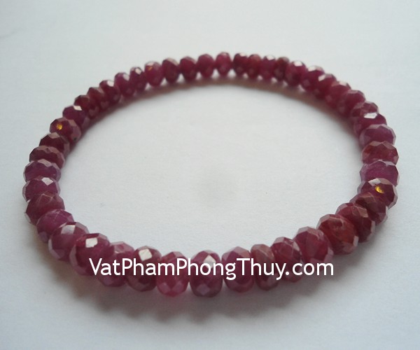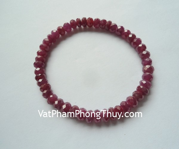 + Chất liệu và hoàn thiện: Vòng tay Ruby hạt mài vát nhiều cạnh (tại Việt Nam).
