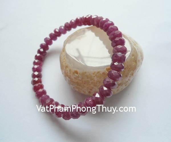+ Chất liệu và hoàn thiện: Vòng tay Ruby hạt mài vát nhiều cạnh (tại Việt Nam).