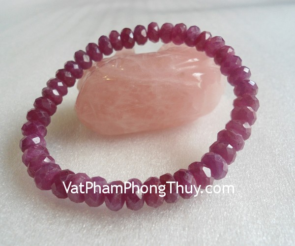 + Chất liệu và hoàn thiện: Vòng tay Ruby hạt mài vát nhiều cạnh (tại Việt Nam).