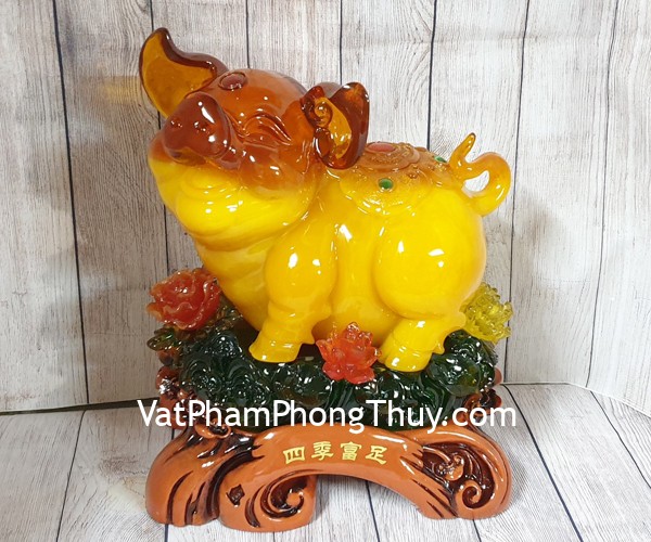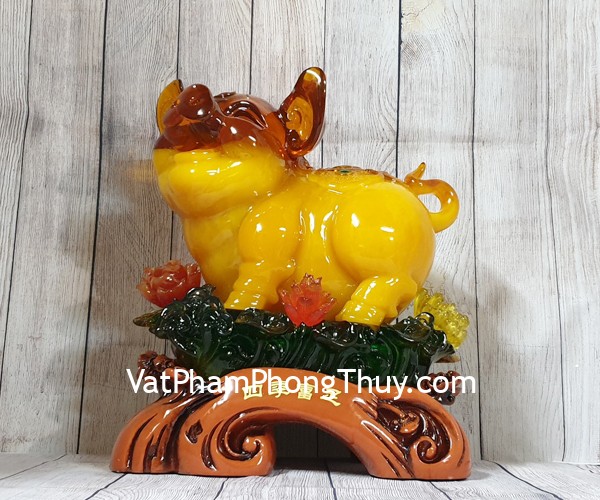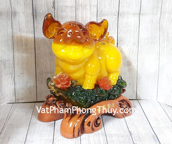+ Chất liệu và hoàn thiện: Tượng Vua heo vàng cam vươn mình trên mây mẫu đơn khủng, bột đá màu cao cấp (tại Việt Nam).
