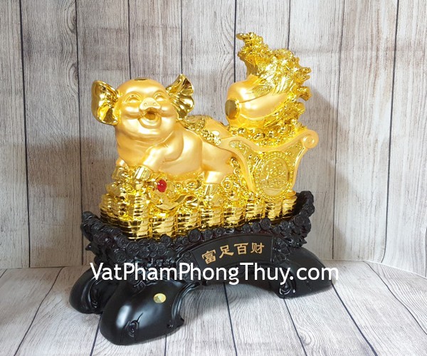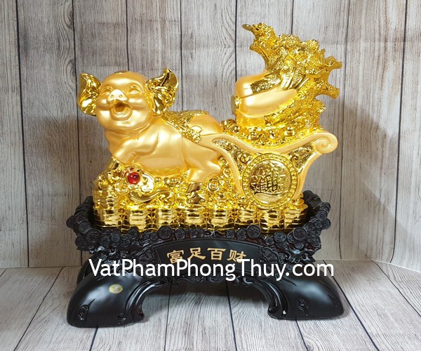 + Ý nghĩa: Phú Túc Bách Tài – heo thường có hình dáng tròn trịa, béo tốt nên tượng trưng cho phúc khí, tài lộc dồi dào. Vì vậy trưng bày heo phong thủy mang ý nghĩa của sự giàu có, tài lộc cho gia chủ, đảm bảo nguồn tài chính ổn định. Hình ảnh heo vàng kéo xe bắp cải, kéo thêm của cải tài lộc vào cho gia chủ, mang sự giàu có, cuộc sống vật chất đầy đủ, làm gia tăng thêm nguồn tài sản trong gia đình.