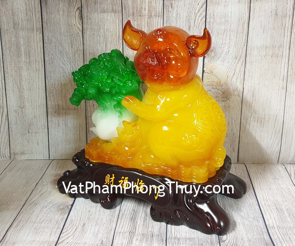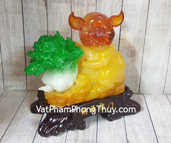 + Chất liệu và hoàn thiện: Tượng heo vàng ngọc ôm bắp cải xanh, bột đá màu cao cấp (tại Việt Nam).