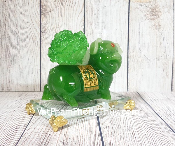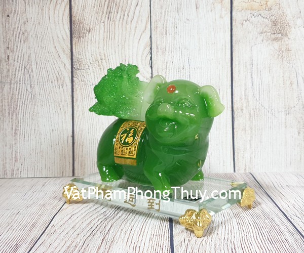 + Chất liệu và hoàn thiện: Tượng vua heo xanh ngọc cõng bắp cải xanh đế thuỷ tinh, bột đá màu cao cấp (tại Việt Nam).