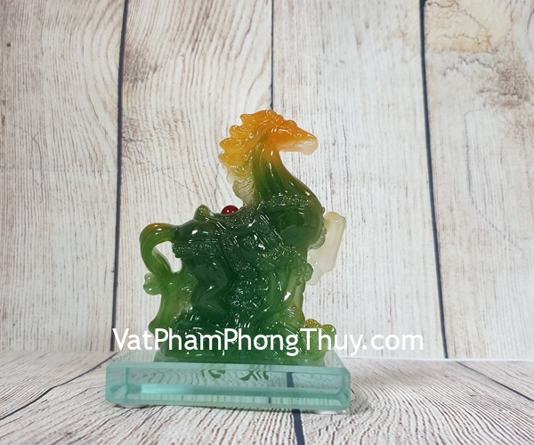 + Chất liệu và hoàn thiện: Tượng ngựa xanh ngọc đa sắc trên núi đá, đế thuỷ tinh, hàng bột đá màu cao cấp (tại Việt Nam).