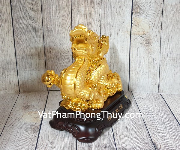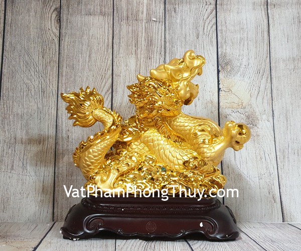 + Chất liệu và hoàn thiện: Tượng rồng vàng cưỡi mây vàng trên đế gỗ, hàng bột đá mạ vàng cao cấp (tại Việt Nam).