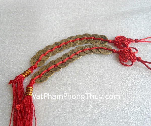 + Chất liệu và hoàn thiện: Tiền xu Thập Toàn Thập Mỹ (xâu 10 xu) giả cổ bằng đồng (tại Việt Nam).