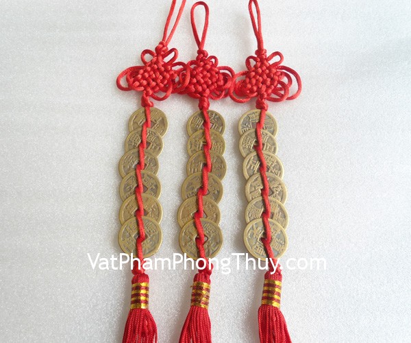 + Chất liệu và hoàn thiện: Tiền xu Lục Đế (xâu 6 đồng xu) giả cổ bằng đồng (tại Việt Nam).