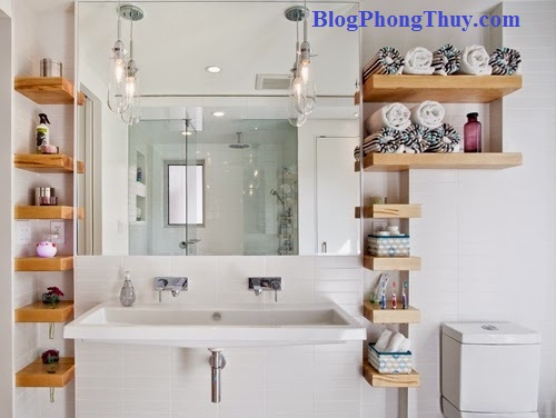 Trả lời: Trong phòng vệ sinh có rất nhiều các đồ vật cần thiết cho cuộc sống. Khi bố trí nên lấy nguyên tắc đơn giản, gọn gàng, sạch sẽ, cấm kỵ dùng phòng vệ sinh làm nơi cất giữ các đồ vật linh tinh, phải tránh chất đống các đồ vật thường dùng và các đồ vật không dùng đến vào trong đó.