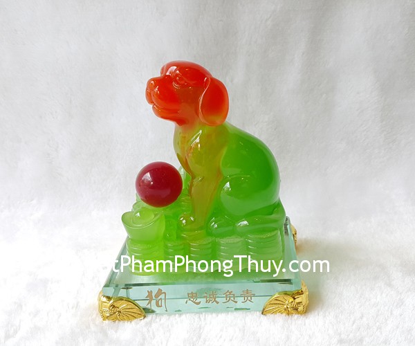 Tượng chó xanh ôm châu đỏ đế thủy tinh H411G giúp cải thiện mối quan hệ, tượng trưng lòng trung thành (Xem chi tiết tại đây)
