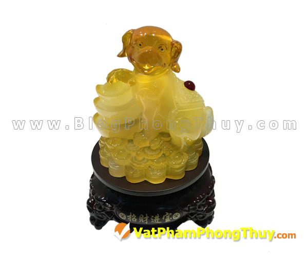 Chó vàng trên bảo tải vàng đế thuỷ tinh – Phát tài * Mã số C033A * Giá bán 1,050,000