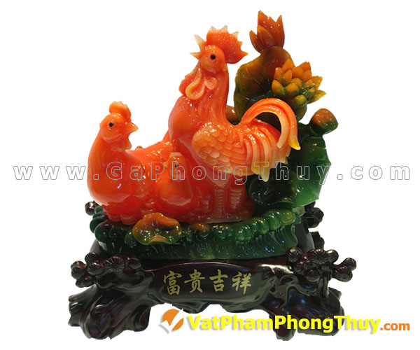 Gia đình gà bên sen màu ngọc cam – Phú quý cát tường * Mã số G019A * Giá bán: 4,830,000