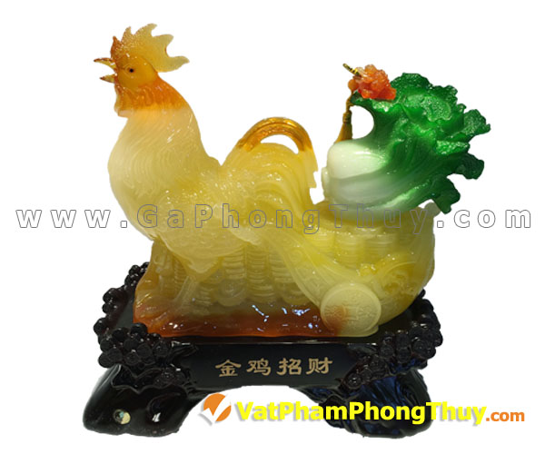 Gà lưu ly vàng trên tiền đế thủy tinh – Phát tài kê * Mã số G063A * Giá bán: 1,785,000