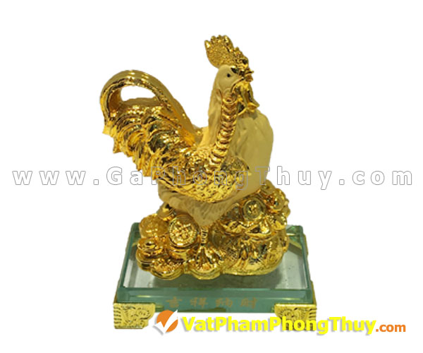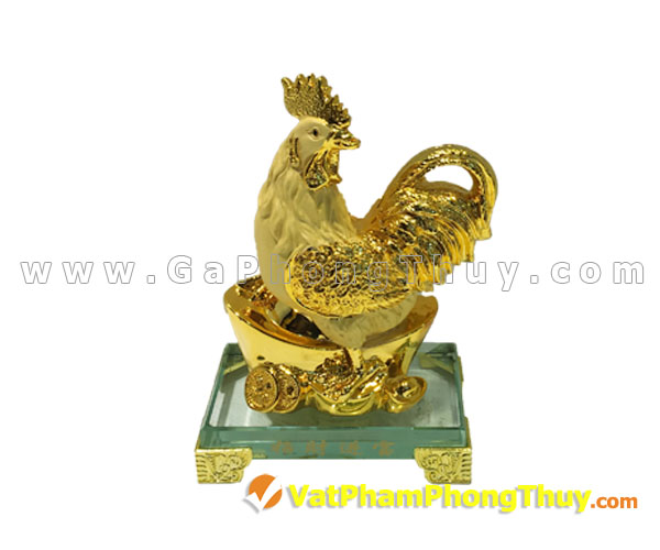 Gà vàng trên ngân bảo lớn đế thủy tinh – Chiêu tài tấn bảo * Mã số G075A * Giá bán: 945,000