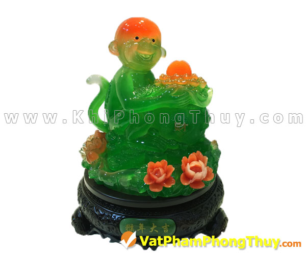 Khỉ cát tường ôm như ý đế thủy tinh – như ý kim hầu * Mã số K073M * Giá bán: 1,058,750