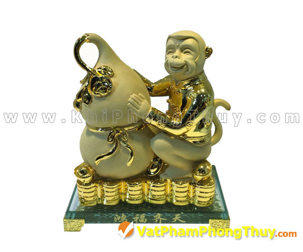 Khỉ thần tài vàng ôm hồ lô đế thủy tinh – hồng phước tề thiên * Mã số K076M * Giá bán: 1,347,500