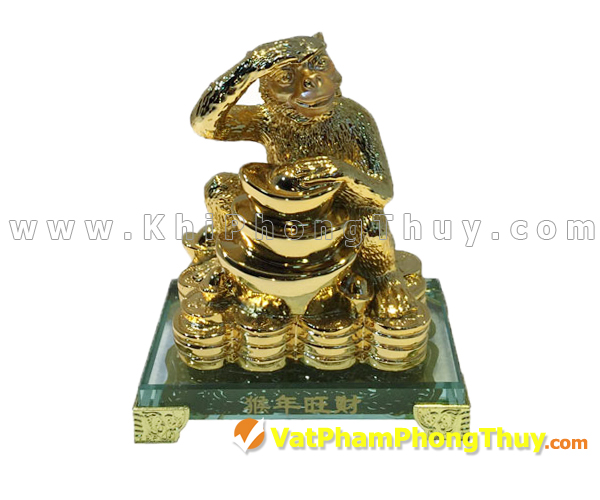 Khỉ thần tài ôm đào đế thủy tinh – kim hầu hiến thị * Mã số K051M * Giá bán: 1,443,750