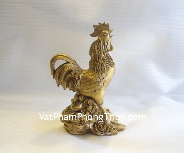 Trong phong thủy, biểu tượng gà trống thường được sử dụng khá phổ biến để giải trừ “đào hoa sát” cũng như tránh bị tiểu nhân hãm hại. Bên cạnh đó, gà trống còn thu hút thịnh khí, đem lại may mắn cho gia đình, chiêu tài phát lộc. Gà đặt trên như ý vàng để gia tăng sự thu hút tiền bạc, mọi sự thành công như mong muốn, may mắn về quyền lực và vương giả.