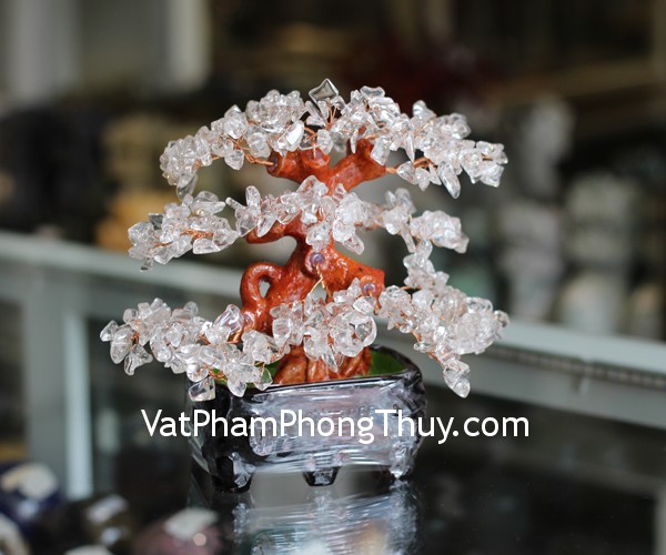 Cây tài lộc đá thạch anh trắng, gốc tròn, thích hợp để trang trí bàn làm việc, thu ngân, quầy lễ tân, để hút tài lộc vào nhà. Với cây tài lộc thạch anh trắng, phải để cây ở hướng Tây hoặc Tây Bắc để hợp với ngũ hành và mang lại hiệu quả tốt nhất cho gia chủ.