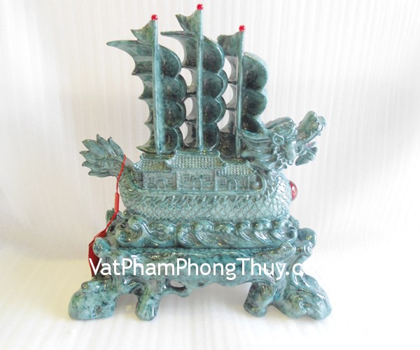 Tượng thuyền buồm xanh vân mây được làm bằng bột đá màu, có hình đầu rồng, có giá 3,465,000 VNĐ